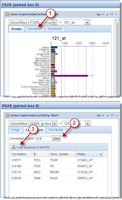 We’re happy to report now that search by correlation is now an official feature in BioGPS. Follow the three steps shown at the right to see how it works. As always, let us know if you have any feedback on this new feature.