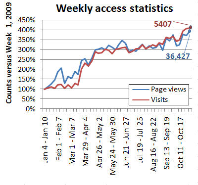 - In October 2009, we had 21481 visits from 10586 unique visitors, resulting in 142,419 pageviews.